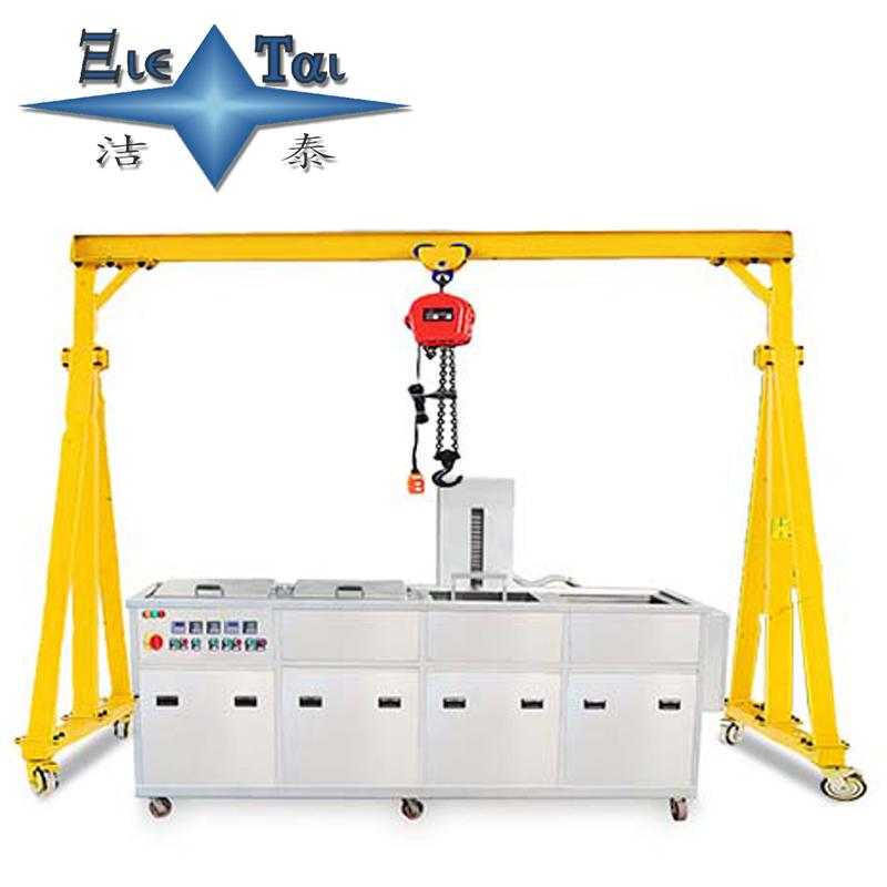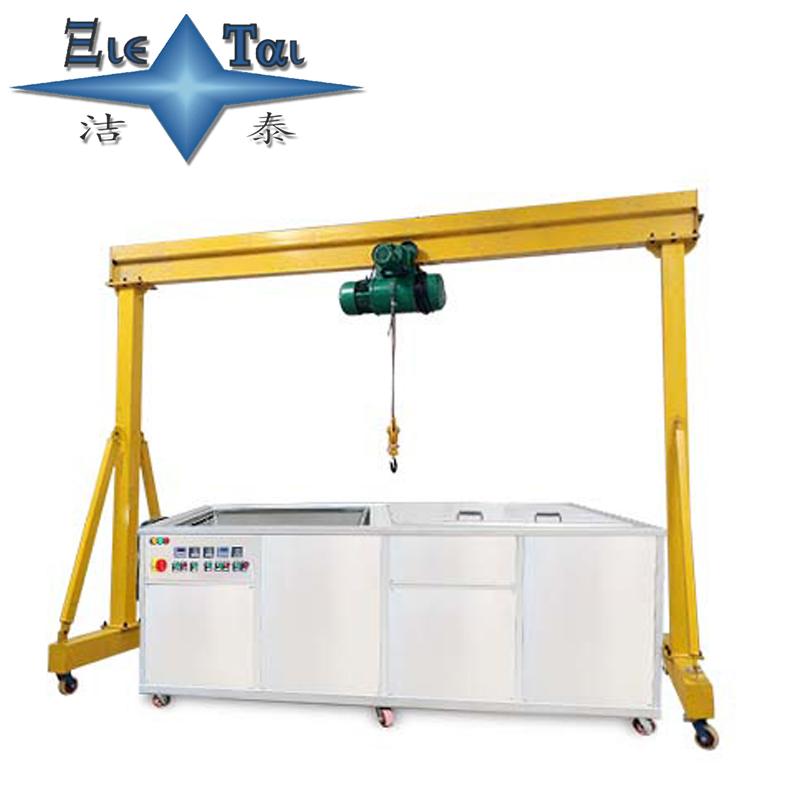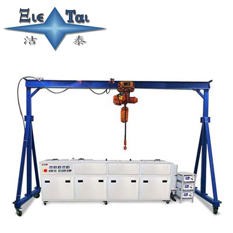 潔泰行吊式超聲波清洗機也叫電動葫蘆多槽式超聲波清洗機,一般都是按照客戶工件需求來進行設計制造。該產品可以選擇超聲波清洗,超聲波漂洗,熱浸泡,壓縮空氣攪拌浸泡,烘干,化學拋光,上油等工藝或工序組合,由于采用多道清洗方式,清洗液能夠多級精密過濾,可以有效保證產品的清潔度,按客戶要求設計洗凈流程。