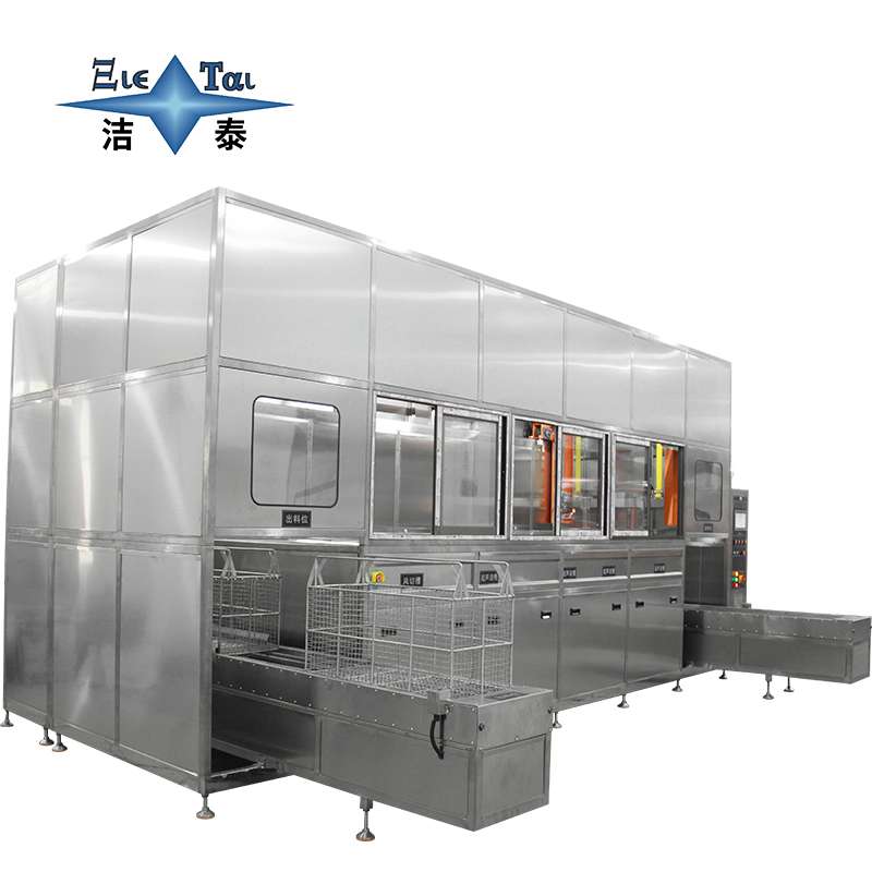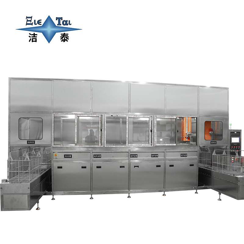 潔泰五槽龍門臂全自動超聲波清洗機,主要運用于機械、電子、珠寶、光學、醫藥、涂裝、汽保及真空鍍膜前期處理等相關類。對于表面形狀復雜的零部件,如零部件上面的凹槽、狹縫、盲孔、深孔的清洗有著高效快速的清洗作用。同時,能夠清洗掉零件表面油污、銹蝕及氧化物,實現粗洗漂洗烘干一站式處理。